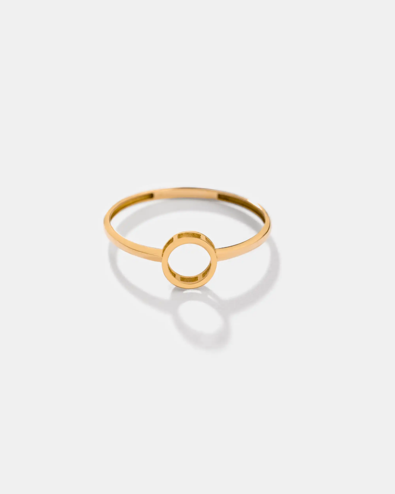 انگشتر طلا دایره تو خالی، ساخته شده از طلا 18 عیار و کاملا دست ساز می باشد.