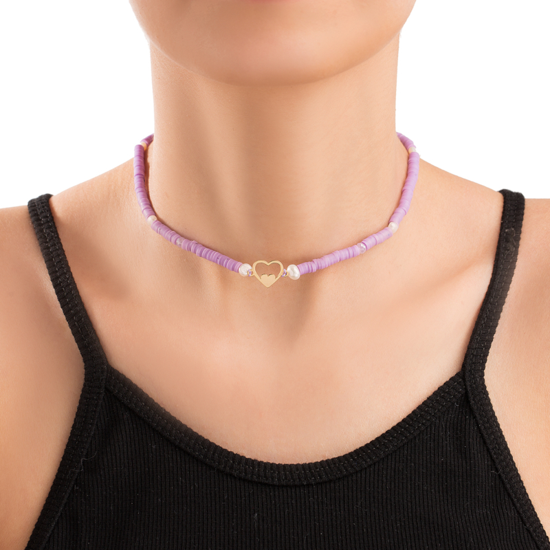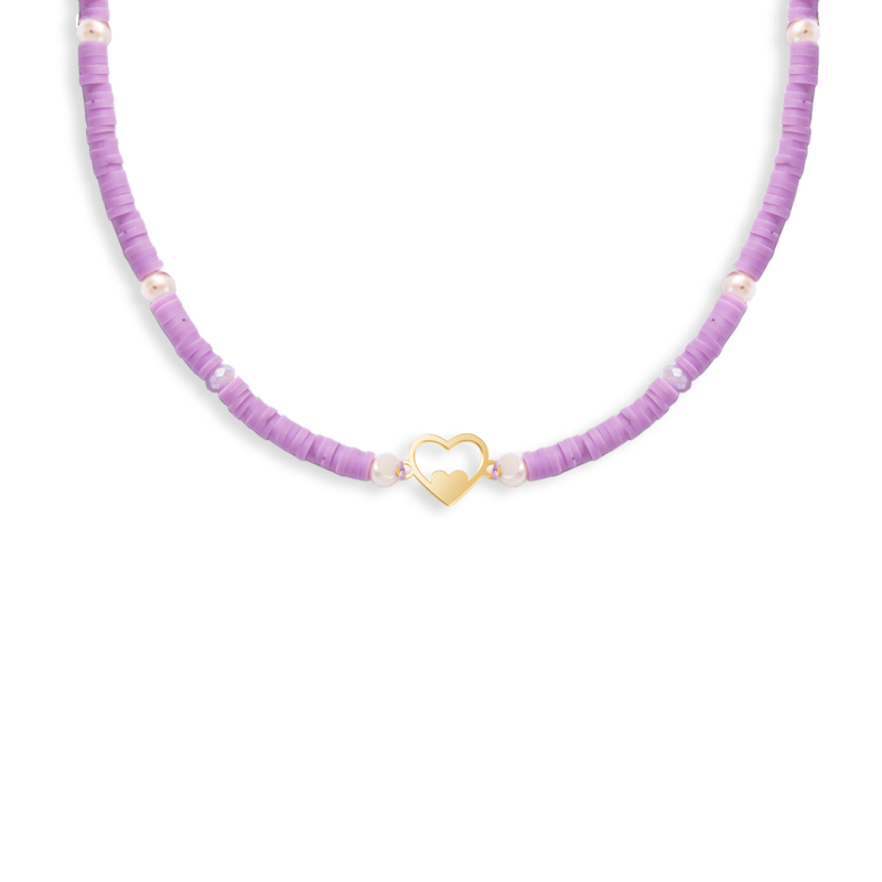 گردنبند طلا قلب موته فیمو بنفش، ساخته شده از طلا 18 عیار و کاملا دست ساز می باشد.