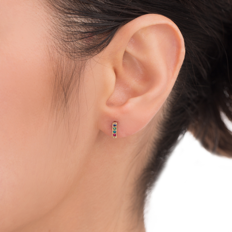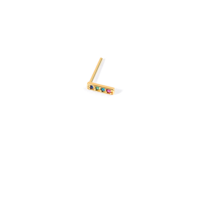 گوشواره طلا تک لنگه مستطیل نگین دار، ساخته شده از طلای ۱۸ عیار و کاملاً دست ساز می باشد.