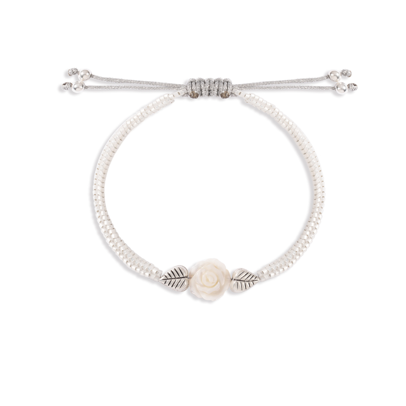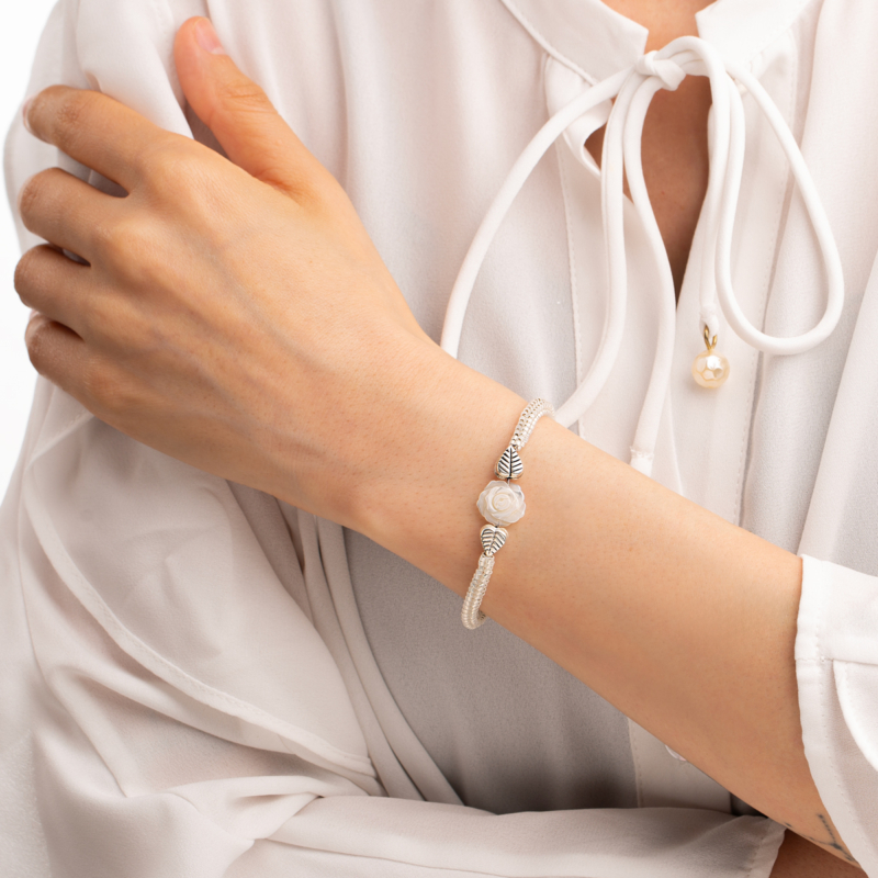 دستبند نقره گلبرگ سفید، ساخته شده از نقره عیار 925 و کاملا دست ساز می باشد.