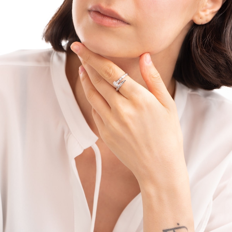 انگشتر نقره میخ کارتیر، ساخته شده از نقره عیار 925 همراه با آبکاری طلا و کاملا دست ساز می باشد.