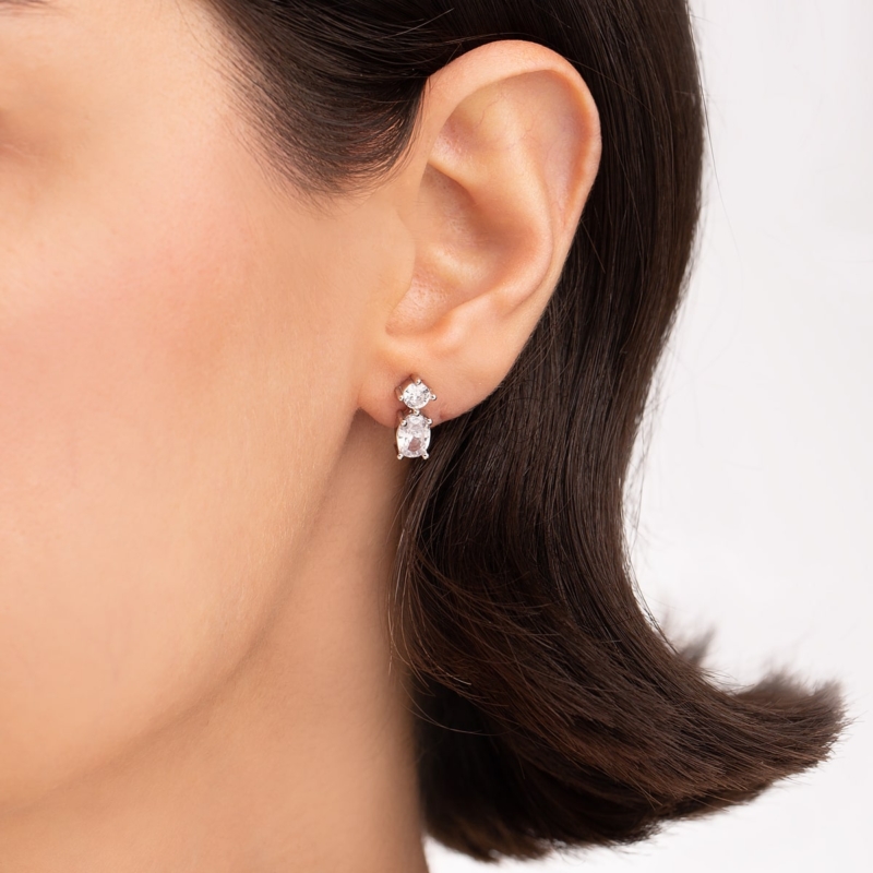 گوشواره نقره دو تخمه، ساخته شده از نقره عیار 925 همراه با آبکاری طلا و کاملا دست ساز می باشد.