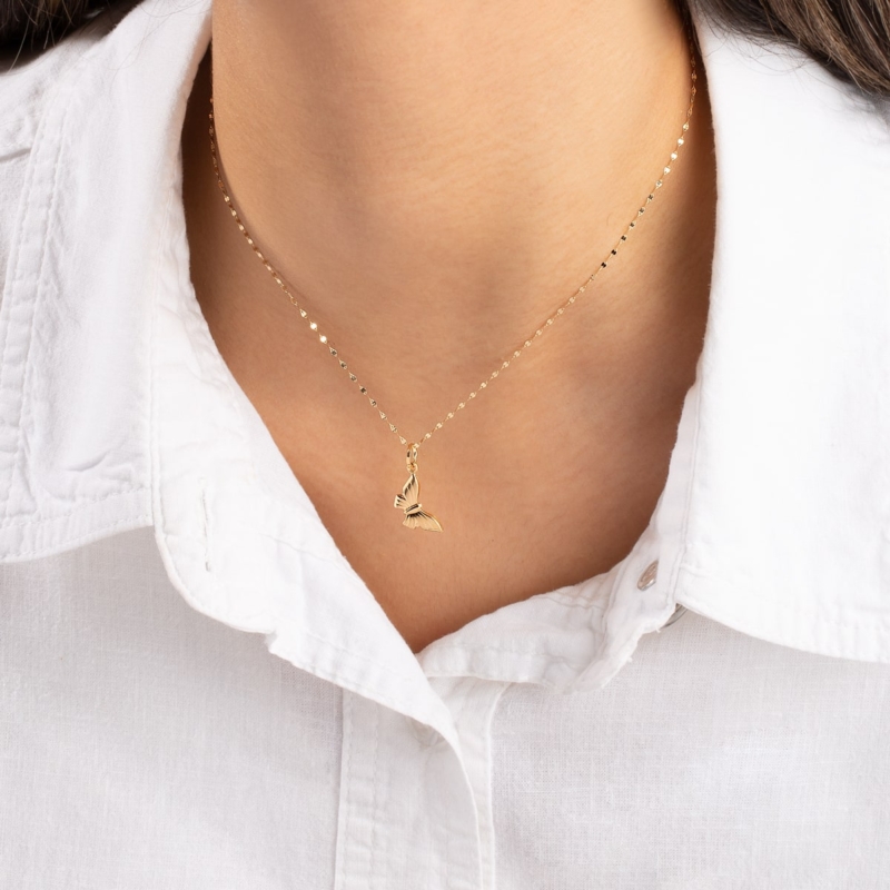 آویز طلا پروانه، ساخته شده از طلا 18 عیار و کاملا دست ساز می باشد.