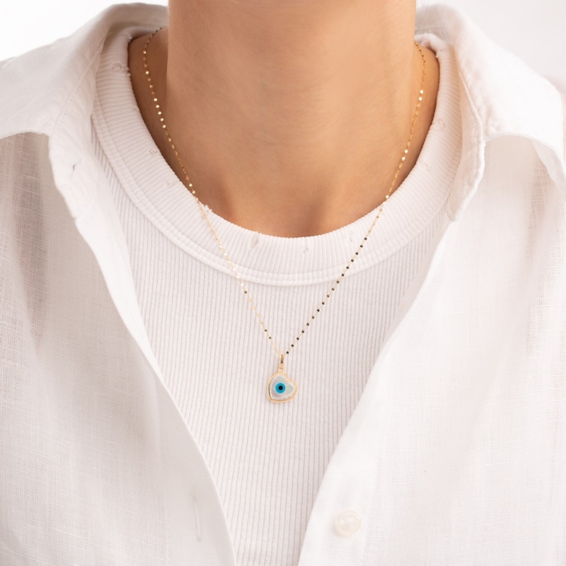 آویز طلا چشم نظر قلب، ساخته شده از طلا 18 عیار و کاملا دست ساز می باشد.