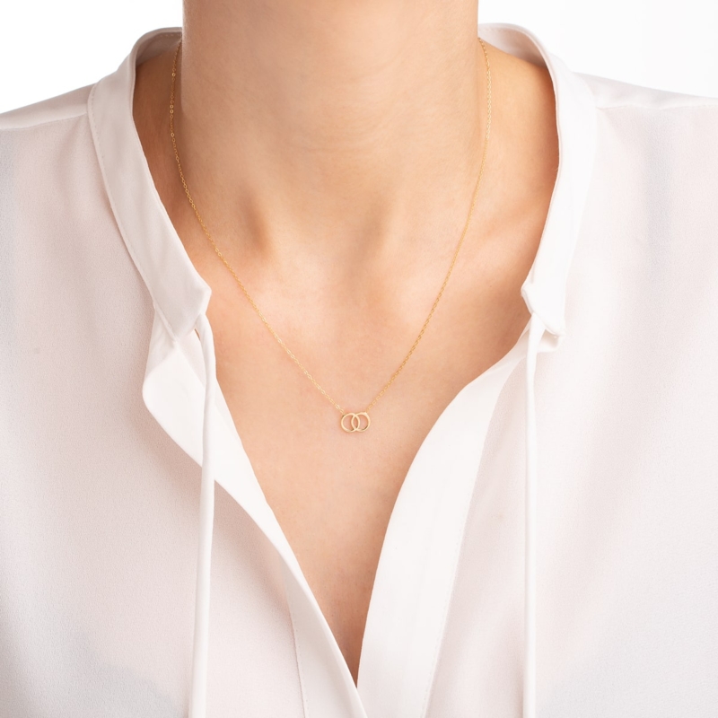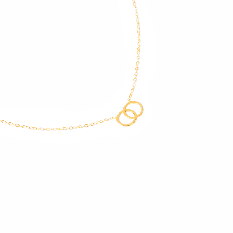 گردنبند طلا دو دایره، ساخته شده از طلا 18 عیار و کاملا دست ساز می باشد.