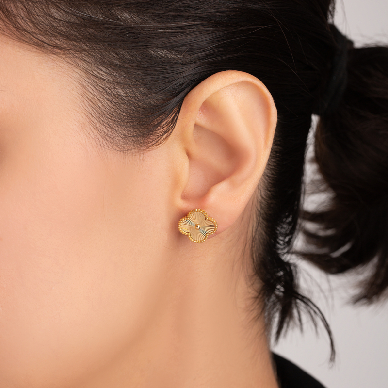 گوشواره طلا ونکلیف تراش، ساخته شده از طلا 18 عیار و کاملا دست ساز می باشد.
