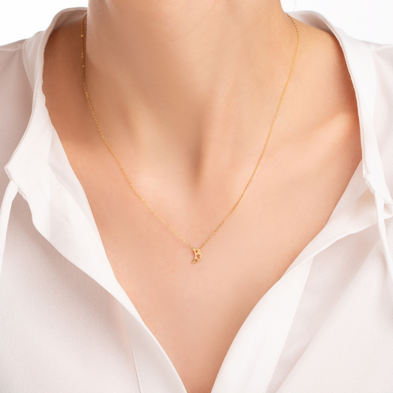 گردنبند طلا ماه و ستاره، ساخته شده از طلا 18 عیار و کاملا دست ساز می باشد.