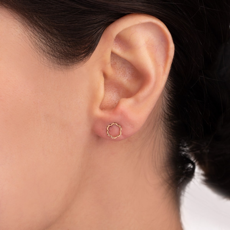 گوشواره طلا گل تو خالی، ساخته شده از طلا 18 عیار و کاملا دست ساز می باشد.