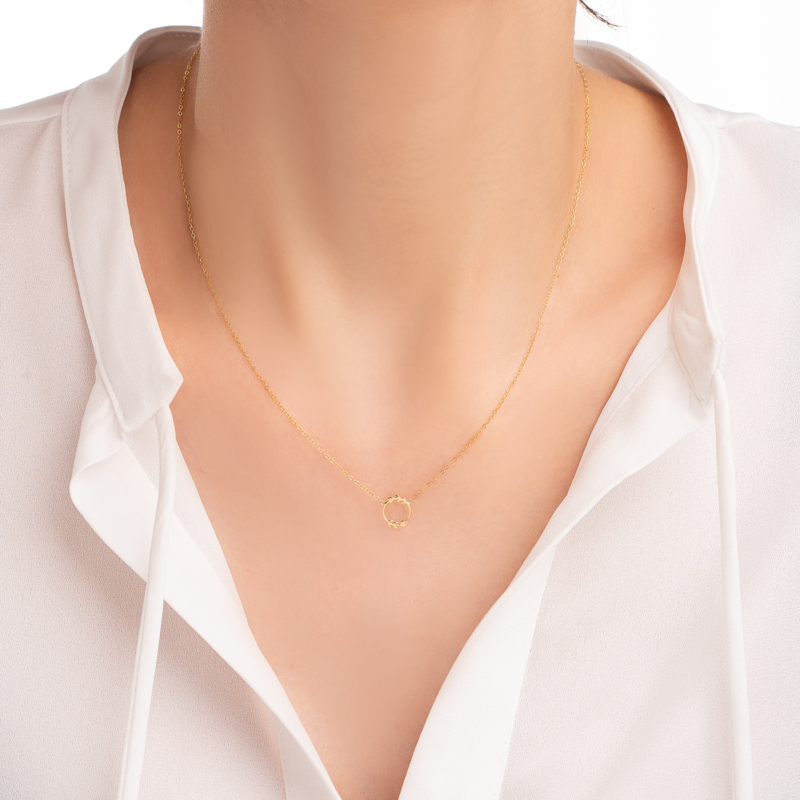 گردنبند طلا حلقه برگ، ساخته شده از طلا 18 عیار و کاملا دست ساز می باشد.