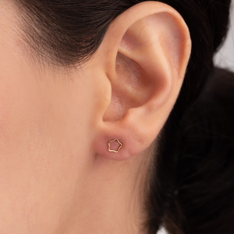 گوشواره طلا ستاره تو خالی، ساخته شده از طلا 18 عیار و کاملا دست ساز می باشد.