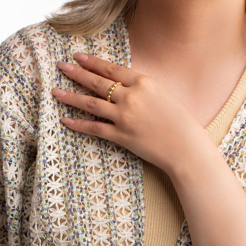 انگشتر طلا دور توپی، ساخته شده از طلا 18 عیار و کاملا دست ساز می باشد.