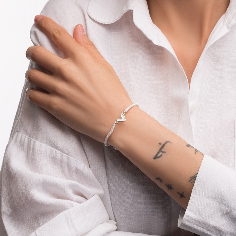 دستبند نقره بافت قلب سفید، ساخته شده از نقره عیار 925 و کاملا دست ساز می باشد.