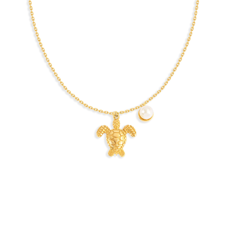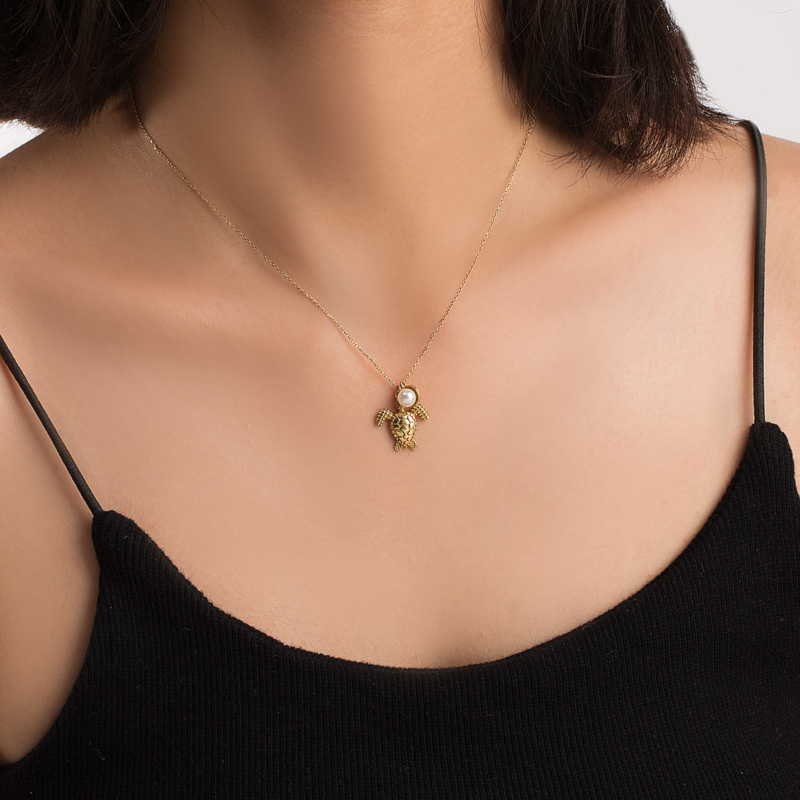 گردنبند طلا لاکی و مروارید، ساخته شده از طلا 18 عیار و کاملا دست ساز می باشد.