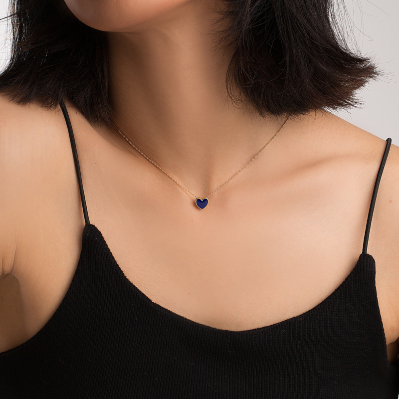 آویز طلا قلب با میناکاری کاربنی، ساخته شده از طلا 18 عیار و کاملا دست ساز می باشد.