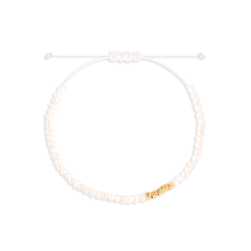 دستبند طلا گوی تراش دار و مروارید، ساخته شده از طلا 18 عیار و کاملا دست ساز می باشد.