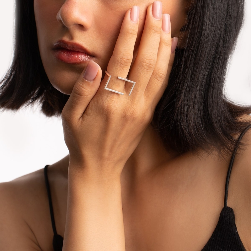 انگشتر نقره مستطیل خطی، ساخته شده از نقره عیار 925 و کاملا دست ساز می باشد.