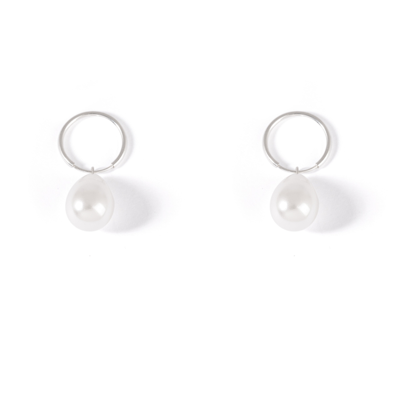 گوشواره نقره حلقه ای مروارید، ساخته شده از نقره عیار 925 و کاملا دست ساز می باشد.