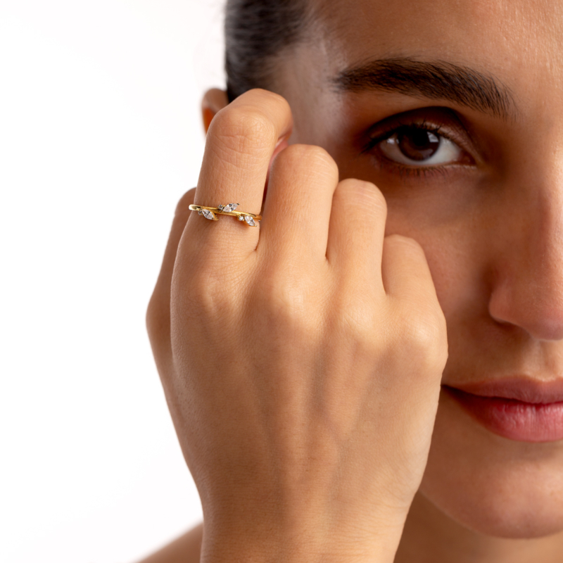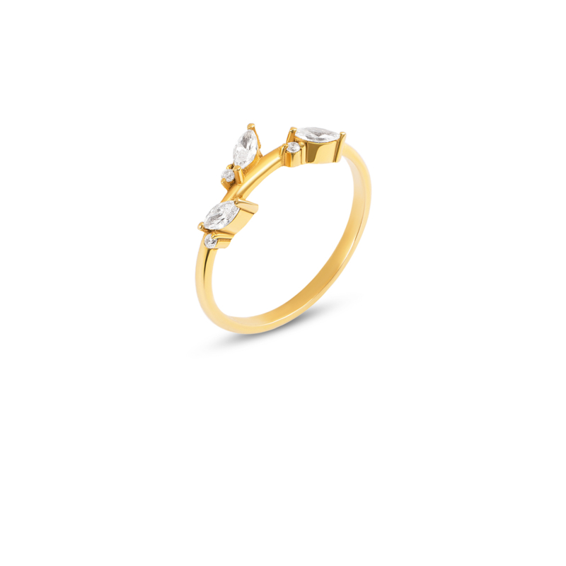 انگشر طلا سه مارکیز، ساخته شده از طلا 18 عیار و کاملا دست ساز می باشد.