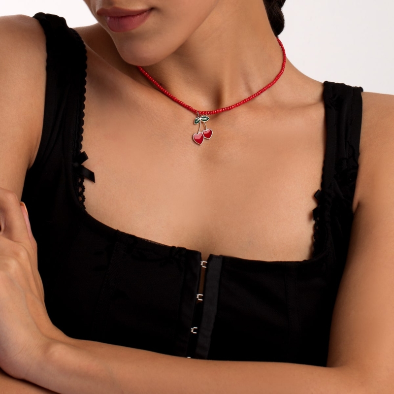 چوکر نقره آلبالو، ساخته شده از نقره عیار 925 و کاملا دست ساز می باشد.