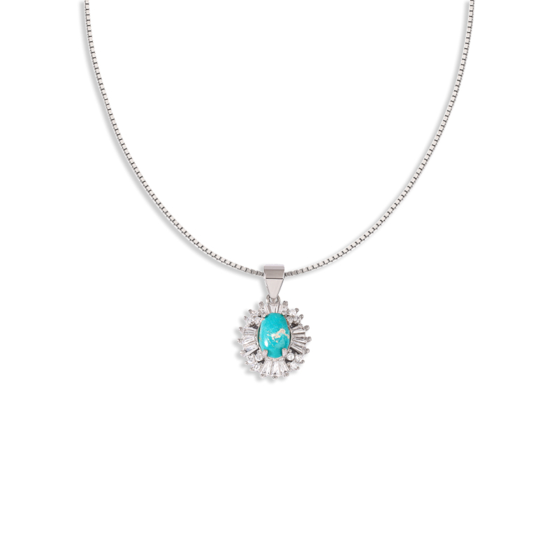گردنبند نقره فیروزه 2، ساخته شده از نقره عیار 925 و کاملا دست ساز می باشد.