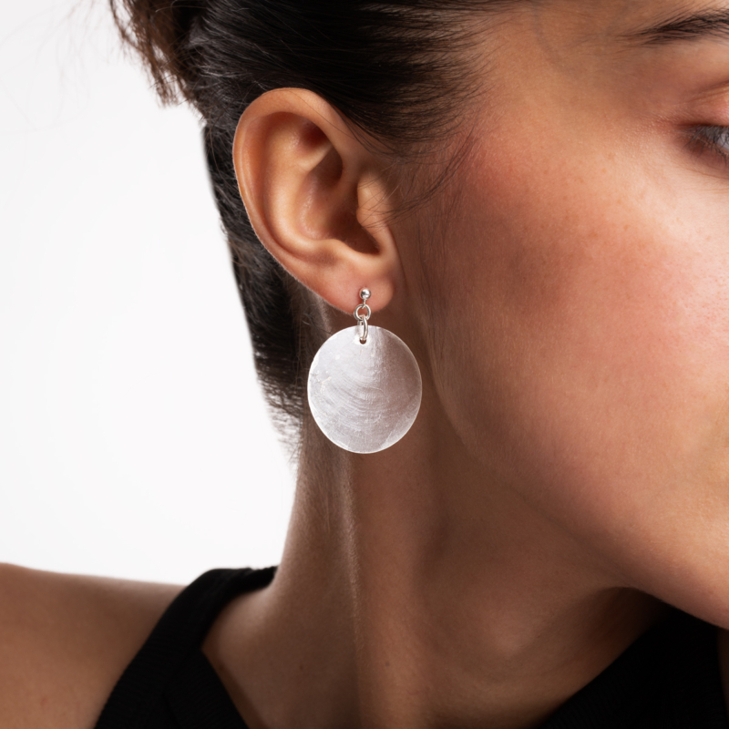 گوشواره نقره پولکی، ساخته شده از نقره عیار 925 و کاملا دست ساز می باشد.