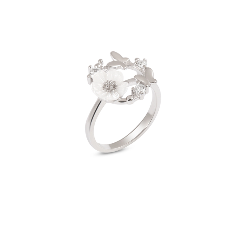 انگشتر نقره گل پروانه ای، ساخته شده از نقره عیار 925 و کاملا دست ساز می باشد.