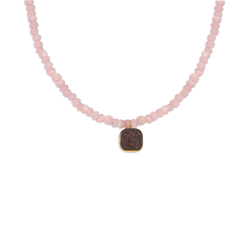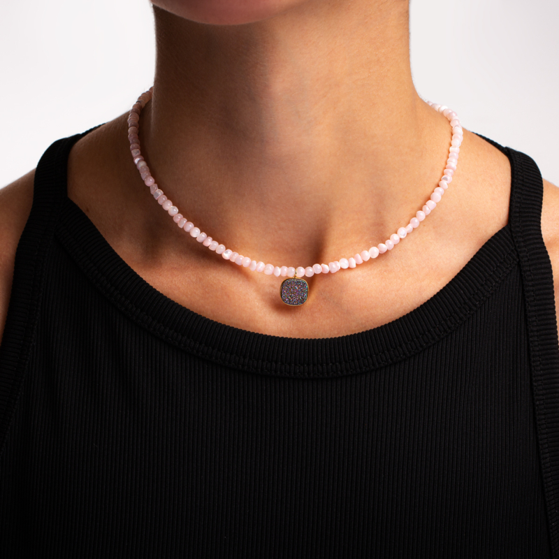 گردنبند طلا سنگی مربع هفت رنگ، ساخته شده از طلا 18 عیار و کاملا دست ساز می باشد.