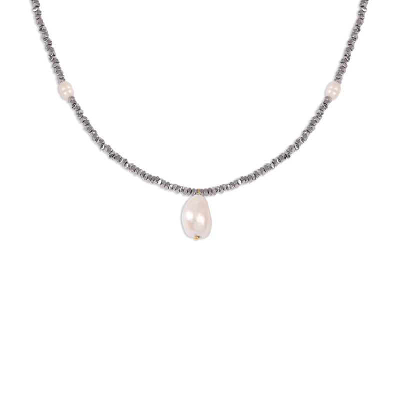 گردنبند طلا سنگی باروک، ساخته شده از طلا 18 عیار و کاملا دست ساز می باشد.