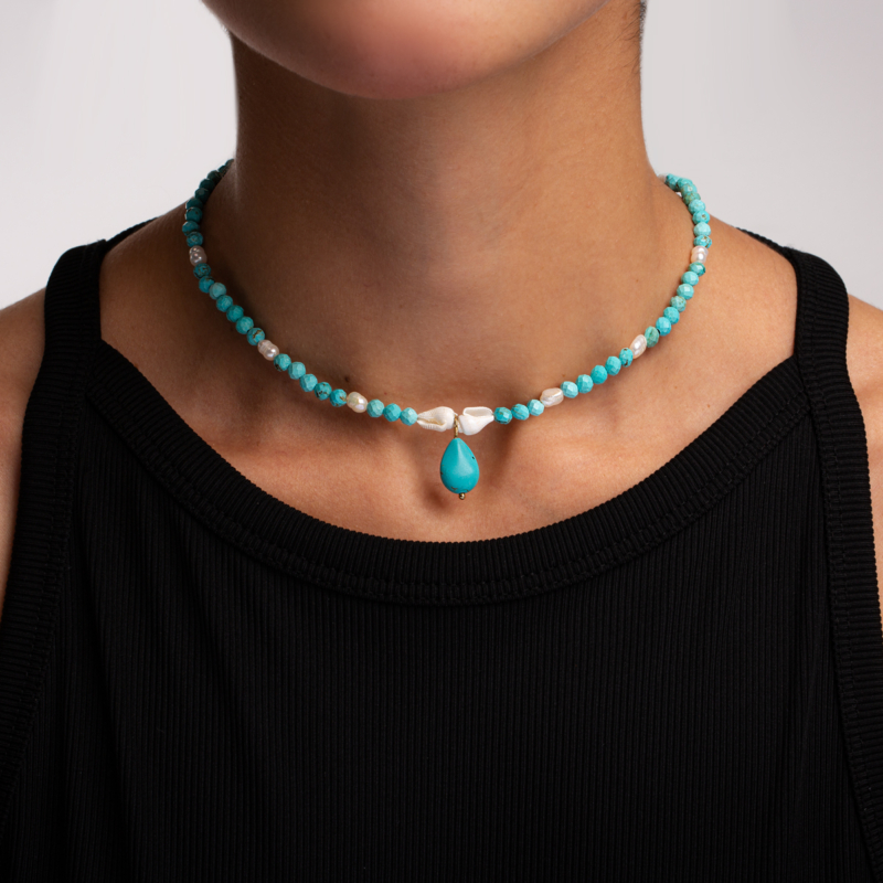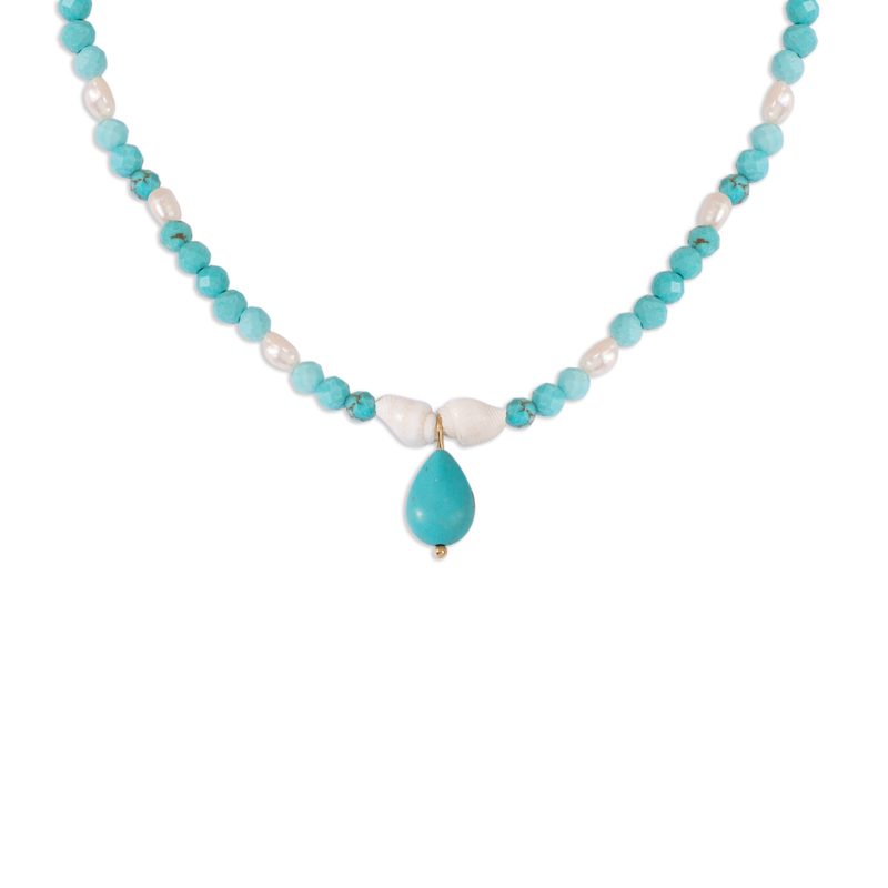 گردنبند طلا آویز فیروزه، ساخته شده از طلا 18 عیار و کاملا دست ساز می باشد.