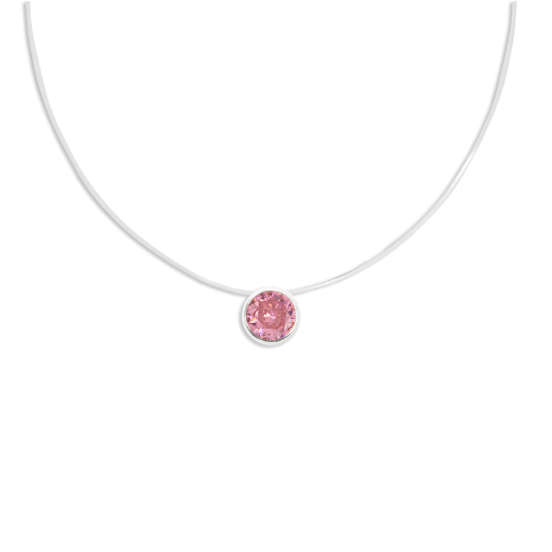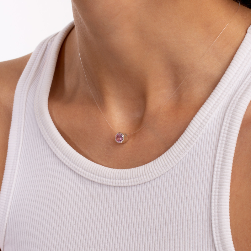 گردنبند نقره تک نگین صورتی، ساخته شده از نقره عیار 925 و کاملا دست ساز می باشد.