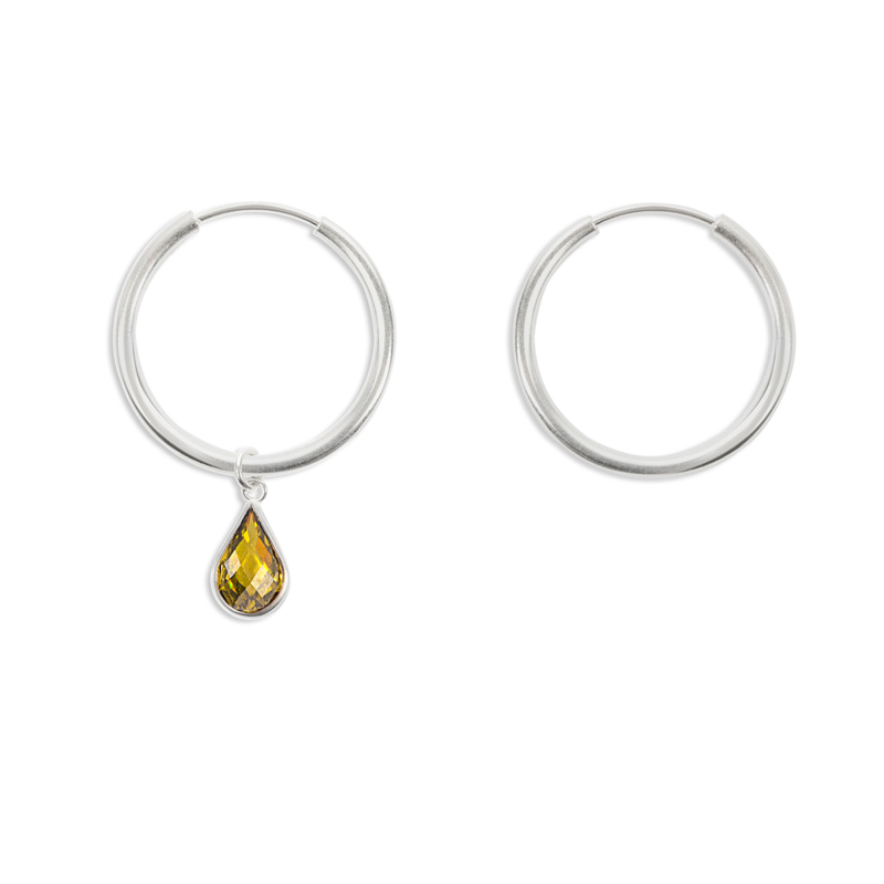 گوشواره نقره حلقه ای با آویز سنگ زرد اشک، ساخته شده از نقره عیار 925 و کاملا دست ساز می باشد.