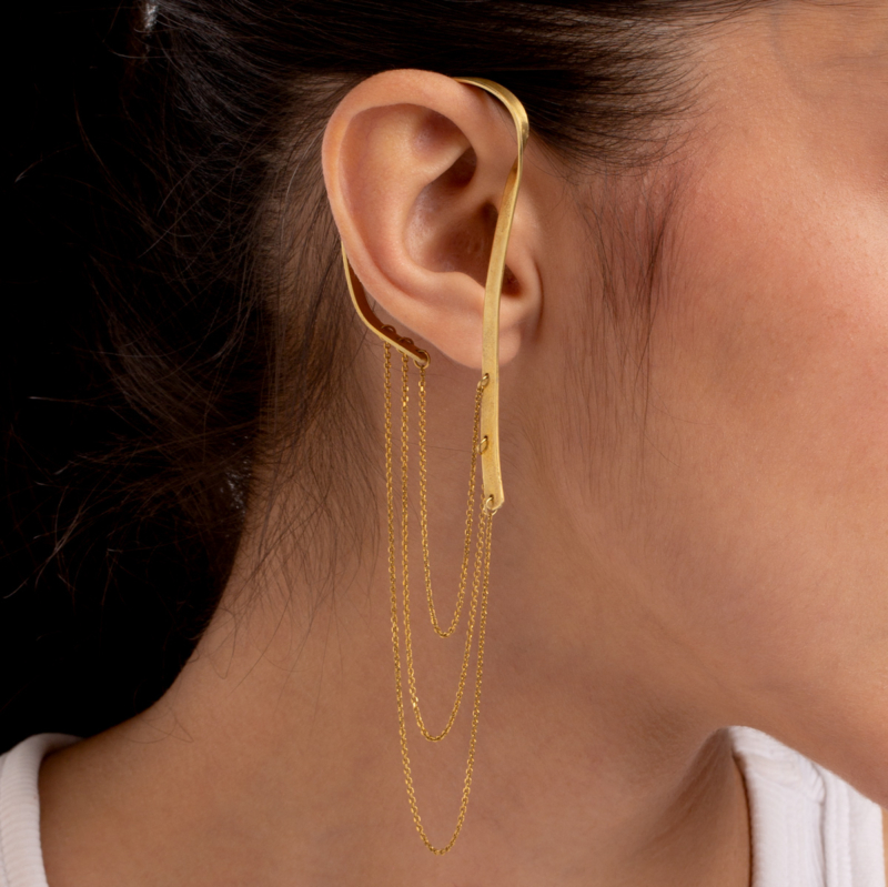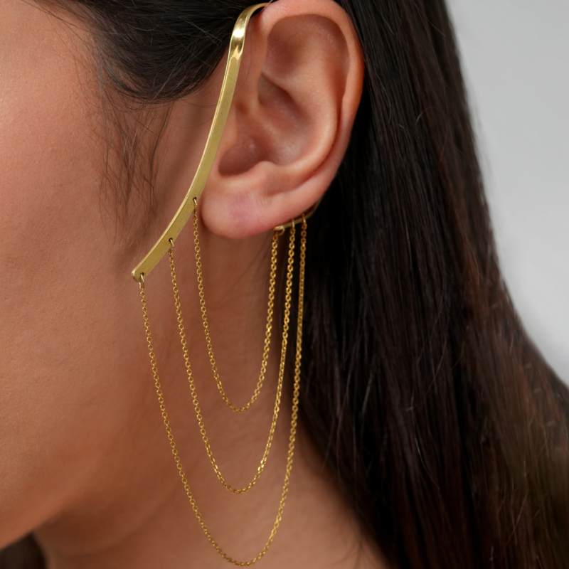 گوشواره حلقه نقره ایرکاف زنجیری،ساخته شده از نقره عیار 925 و آبکاری طلا می باشد.