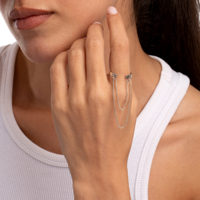 انگشتر نقره زنجیری تک انگشت، ساخته شده از نقره عیار 925 و کاملا دست سایز می باشد.