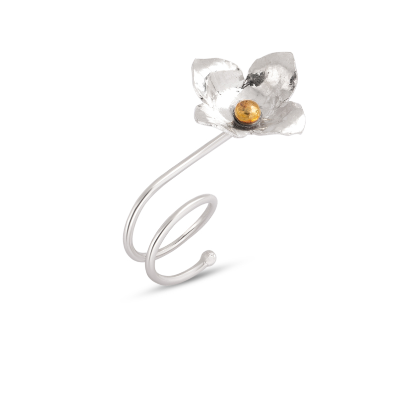 انگشتر نقره گل چهار پر، ساخته شده از نقره عیار 725 و کاملا دست ساز می باشد.