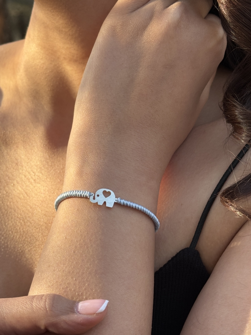 دستبند نقره فیل با قلب ، ساخته شده از نقره عیار 925 و کاملا دست ساز می باشد.