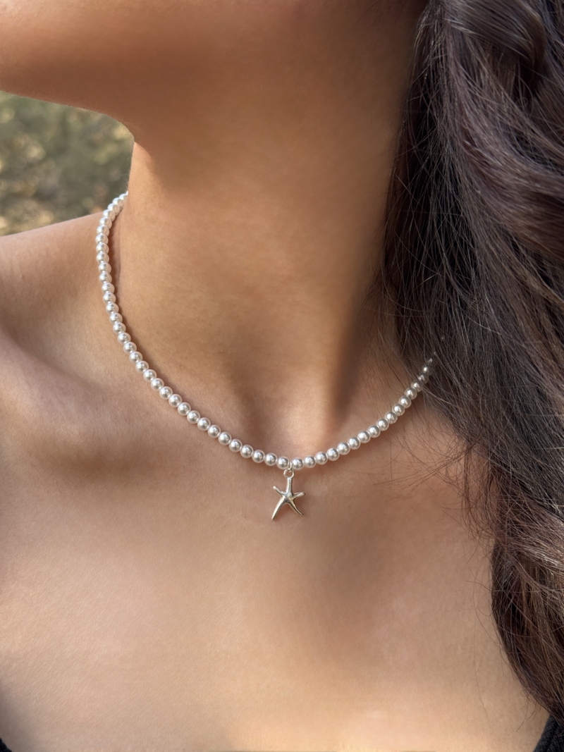 گردنبند نقره ستاره و مروارید ، ساخته شده از نقره عیار 925 و کاملا دست ساز می باشد.