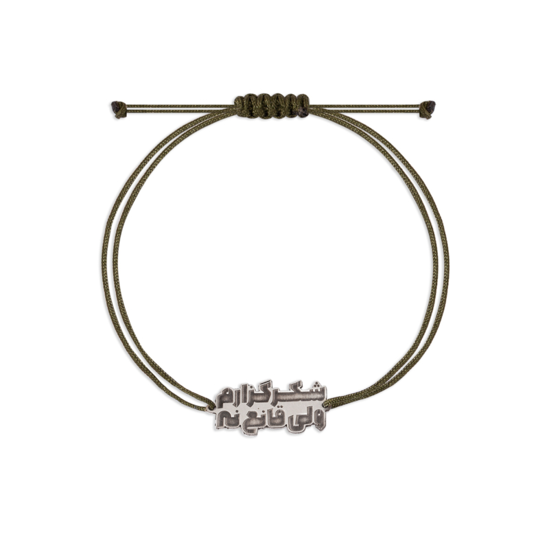 دستبند نقره و نخ شکرگزارم ولی قانع نه ، ساخته شده از نقره عیار 925 و کاملا دست ساز می باشد.