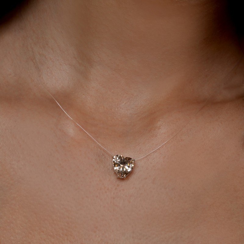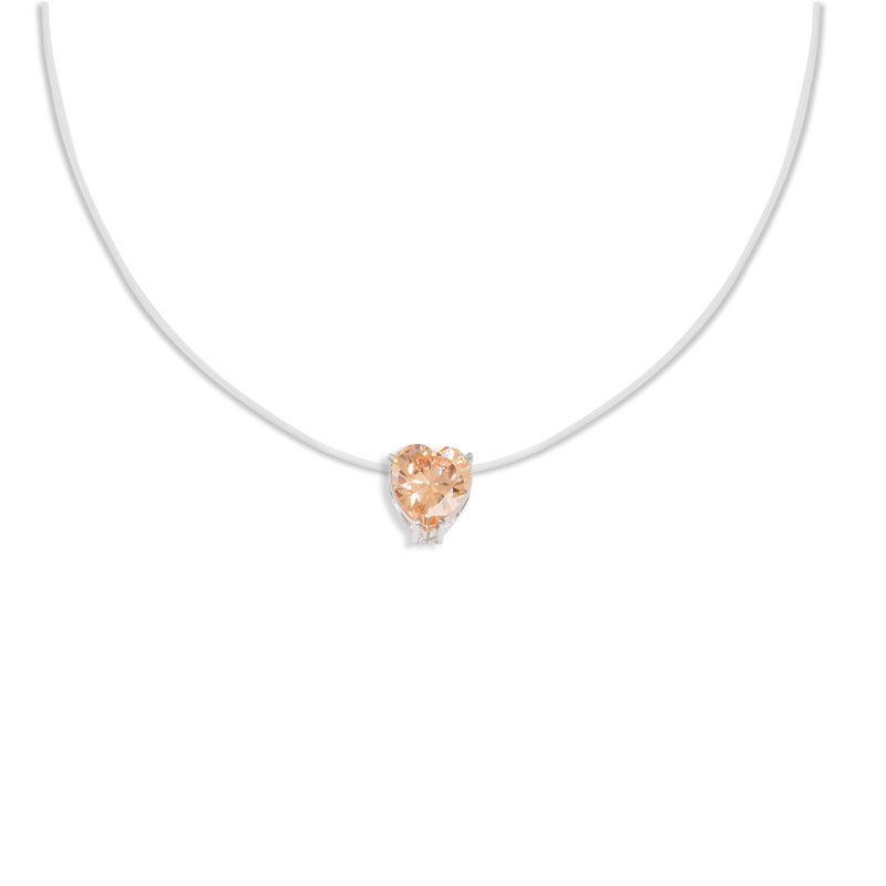 گردنبند با سنگ زیرکونیا شامپاینی تراش قلب با بند نا مرئی سایز 45 سانت.