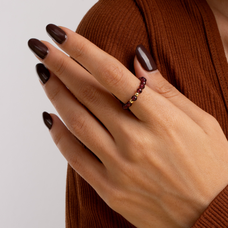 انگشتر طلا 2 گوی و عقیق زرشکی،ساخته شده از طلا 18 عیار و کاملا دست ساز می باشد.