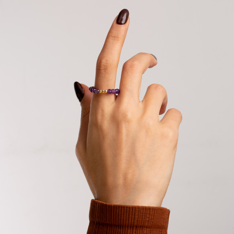 انگشتر طلا 3گوی و آمیتیس،ساخته شده از طلا 18 عیار و کاملا دست ساز می باشد.