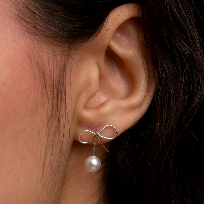 گوشواره نقره پاپیون و مروارید مینی،ساخته شده از نقره عیار 925 و کاملا دست ساز می باشد.