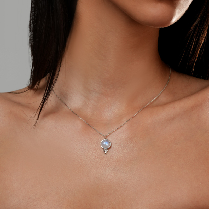 گردنبند نقره زنانه مون استون،ساخته شده از نقره عیار 925 و کاملا دست ساز می باشد.