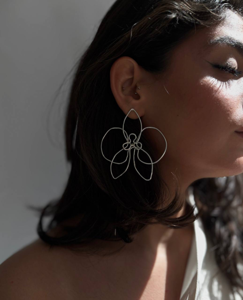 گوشواره نقره تک لنگه ارکیده،ساخته شده از نقره عیار 925 و کاملا دست ساز می باشد.