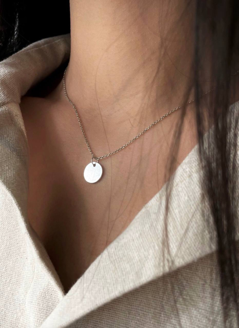 گردنبند دایره ساده،ساخته شده از نقره عیار 925 و کاملا دست ساز می باشد.