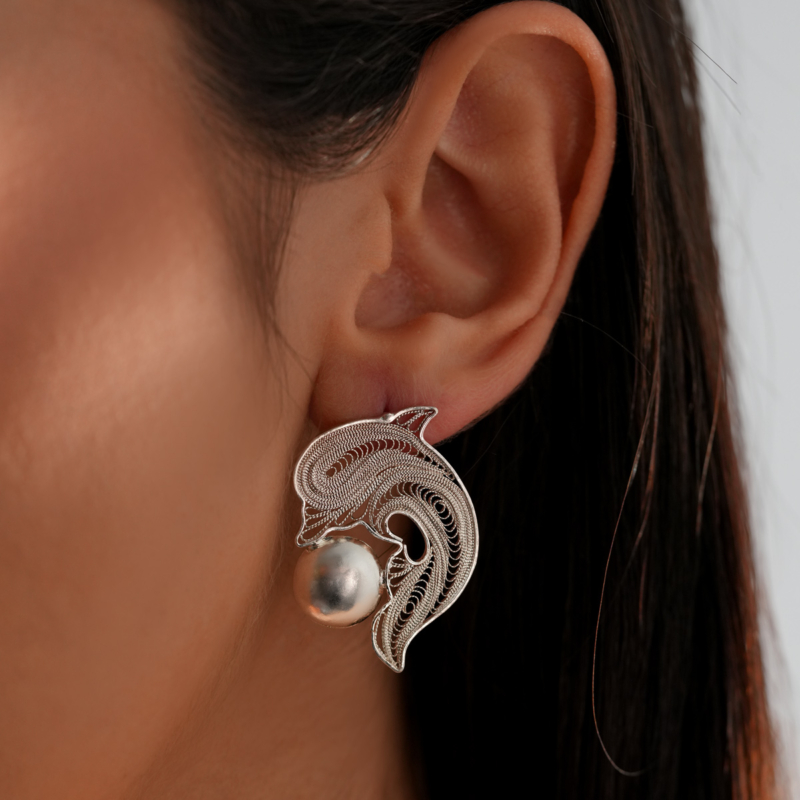 گوشواره نقره تک لنگه دلفین من،ساخته شده از نقره عیار 925 و کاملا دست ساز می باشد.