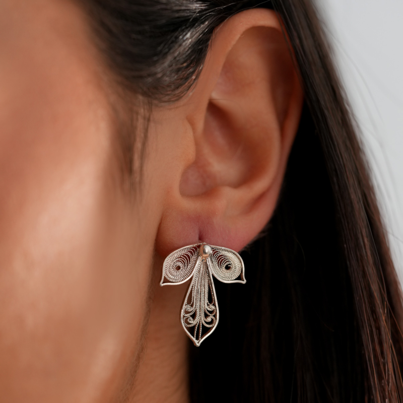 گوشواره نقره جفت مایا،ساخته شده از نقره عیار 925 و کاملا دست ساز می باشد.