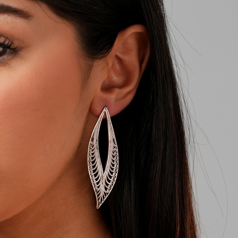 گوشواره جفت گلشیفته،ساخته شده از نقره عیار 925 و کاملا دست ساز می باشد.