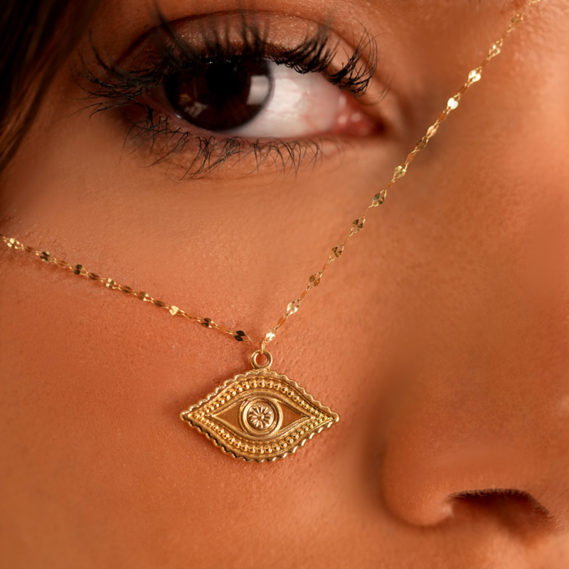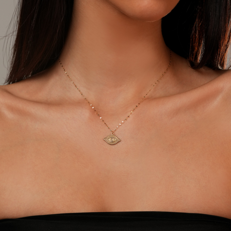گردنبند طلا چشم،ساخته شده از طلا 18 عیار و کاملا دست ساز می باشد.