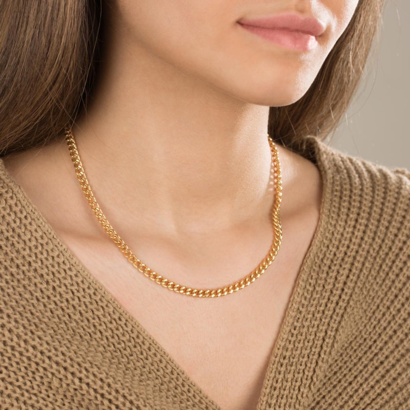 گردنبند زنجیری طلا کارتیه 5 میلی متری،ساخته شده از طلا 18 عیار و کاملا کار دست می باشد.