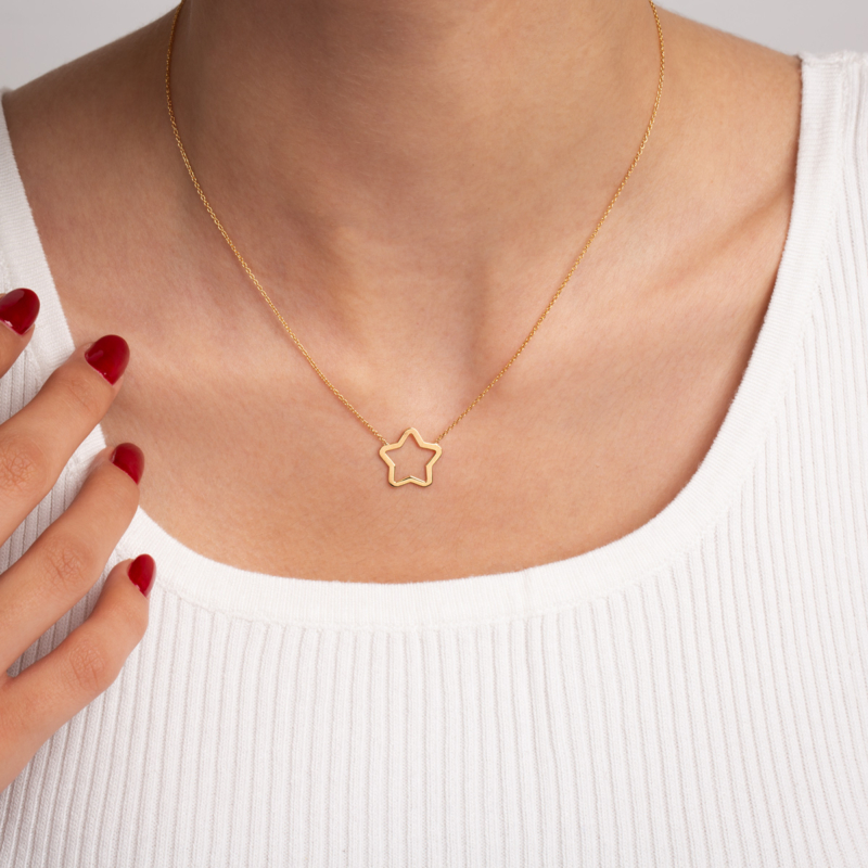 گردنبند طلا ستاره تو خالی،ساخته شده از طلا 18 عیار و کاملا دست ساز می باشد.